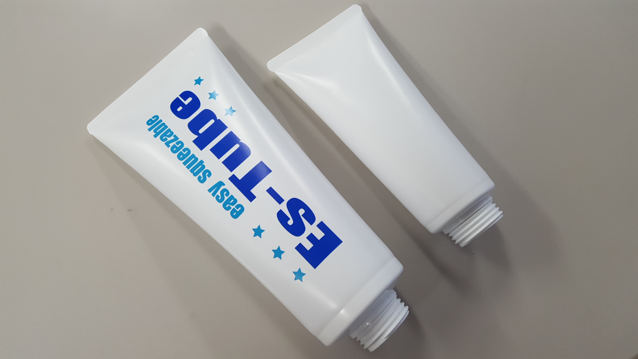 2.肉薄チューブ(300ミクロン)のため折り曲げて最後まで使い切ることができ、ショルダー内部にフィルムが全て納まります
